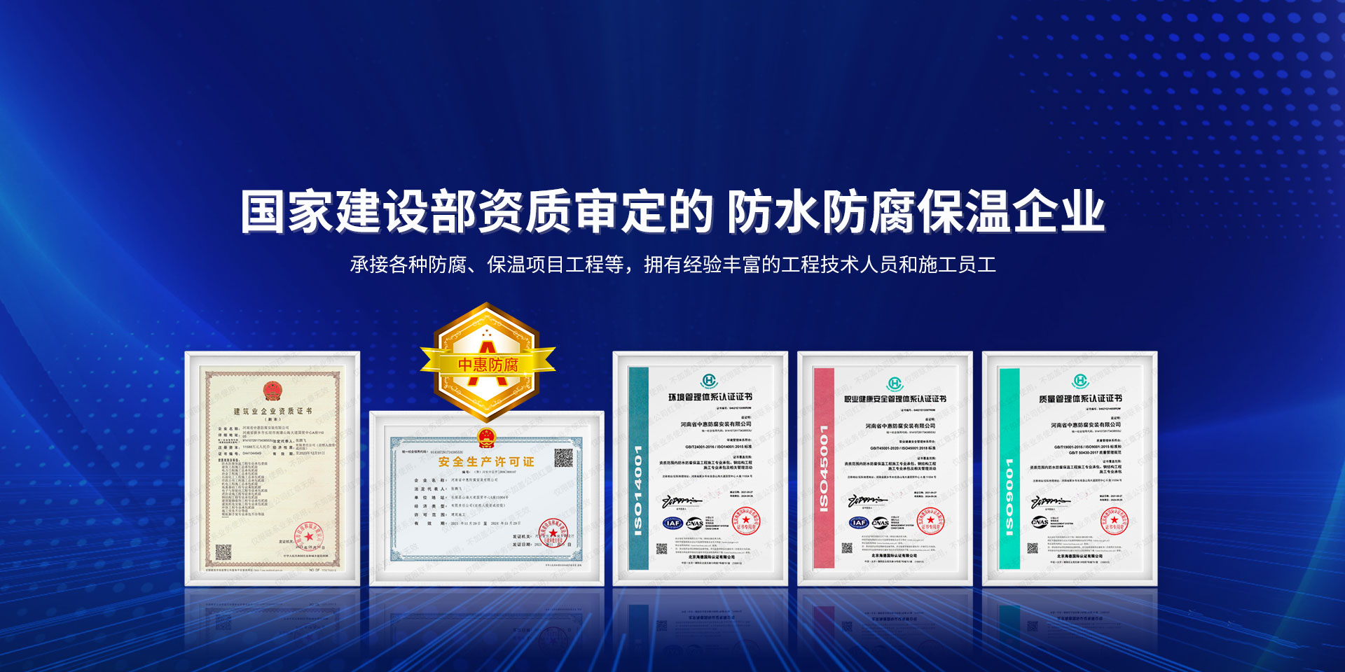 公司經營范圍:防水防腐保溫工程;消防設施工程;建筑裝修裝飾工程;建筑機電安裝工程;電力工程;建筑工程;石油化工工程;工業清洗工程;油罐清洗工程;鋼結構工程;環保工程;模板腳手架工程;電纜防火封堵、防污閃噴涂、外墻外保溫工程;各類施工勞務作業;設備維修、船舶鉚焊、涂裝;電力工程材料、建材、防水材料、防火材料、防腐保溫材料銷售,并相繼通過了GB/T19001-2008idtISO9001:2008GB/T50430-2007質量管理體系認證證書。GB/T24001-2004idtISO14001:2004環境管理體系認證證書。GB/T28001-2011idtOHSAS18001:2007職業健康安全管理體系認證證書。公司是中國防腐蝕于防護協會、中國施工企業管理協會、電力協會和中國鋼結構防水協會會員單位。 公司的經營業務涵蓋了石油、化工、電力、冶金、煤炭、船舶、國防、燃氣、水利、環保、交通運輸、航空及國防軍工和輕紡市政等行業的防腐保溫絕熱設備。鋼結構安裝、防火、防水、金屬噴鍍、聚脲噴繪、陰極保護、防滲透堵漏、玻璃鋼及各種磚版材料襯里、橡膠襯里、煙氣硫和耐酸溶劑腐蝕等工程施工。公司連續十年榮獲“省市先進施工企業”“安全生產先進單位”“重合同,守信用企業”和“AA***資質企業”的稱號。2000年被命名為市級文明單位,2002年被國家工商行政管理局命名為“重合同,守信用的企業”、被中國工業防腐蝕技術協會命名為“防腐蝕企業,能源節約及環境保護領域有豐富的經驗和***的業績。工程一次交驗合格率100%。其中攀枝花鋼鐵公司煉鐵廠四號高爐及熱風爐防腐工程、上海寶鋼公司煤氣柜防腐工程、撫順石油一廠裝置防腐項目、齊魯石化公司稀烴廠高塔防腐工程、吉林化學工業公司煉油廠油罐防腐工程、天津石化熱電廠六號爐頂棚聯絡管保溫工程、大慶油田(太倉)力神泵業工程、中國化學工程第十一建設工程、中原油田勘探局工程、中國石化銷售有限公司華北分部、魯皖輸油管道工程、貴州開磷息烽合成氨工程、陜西黃陵煤化工程、中國石油天然氣西部管道塔里木輸油工程、邯鋼集團邯寶鋼鐵公司煉鐵工程、德州供電工程、吉寶(南通)船廠工程,偃師華潤熱力工程、鄭州熱力總公司。 河南省中惠防腐安裝有限公司愿以豐富的施工經驗,***的技術,***的設備,***的管理,***的服務,竭誠為國內外廣大的用戶提供***滿意、******的工程作品。 我公司愿與國內外同仁一道,團結協作,共同推進防腐蝕行業發展! 公司地址:河南省長垣縣建設路北段360號 固定電話:0373-8866488 郵編:453400 網址:http://www_zhff_com_cn.mipsd.com